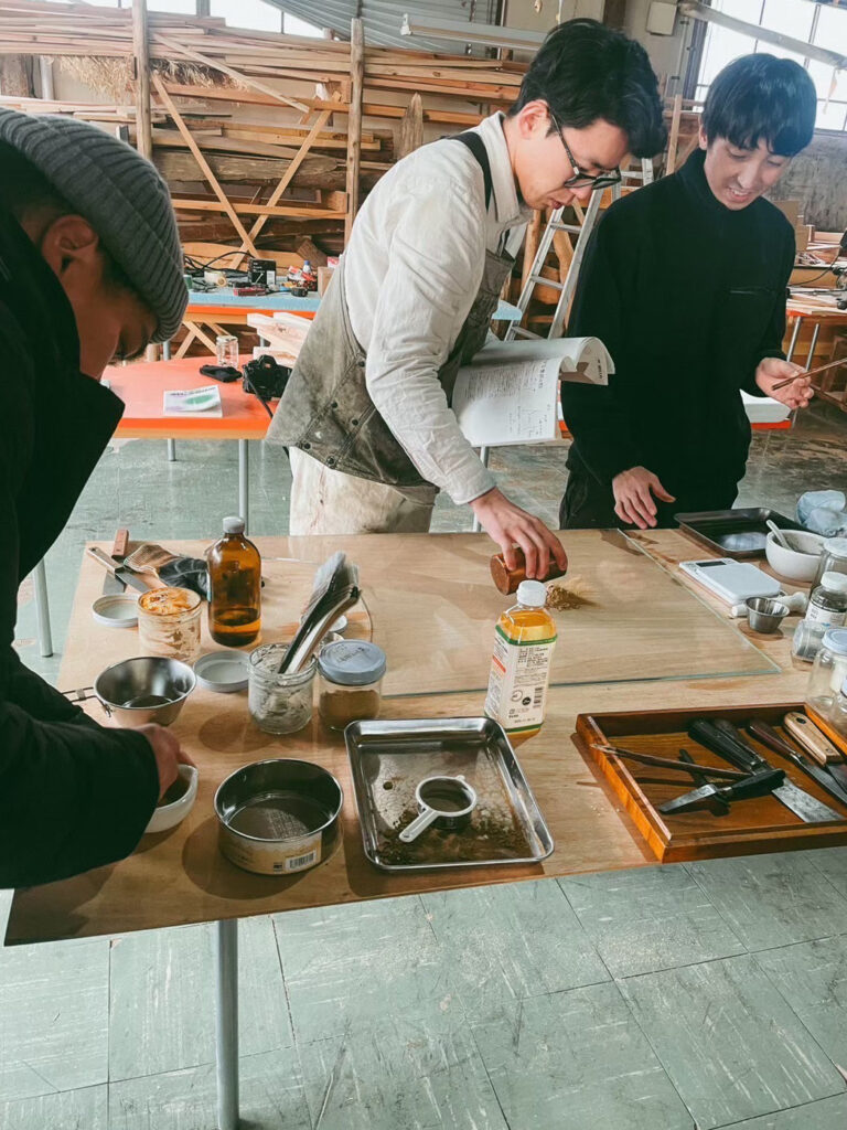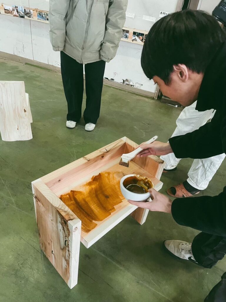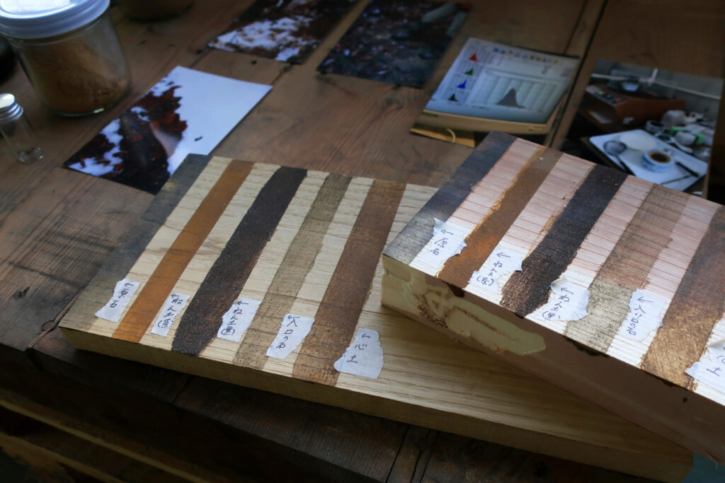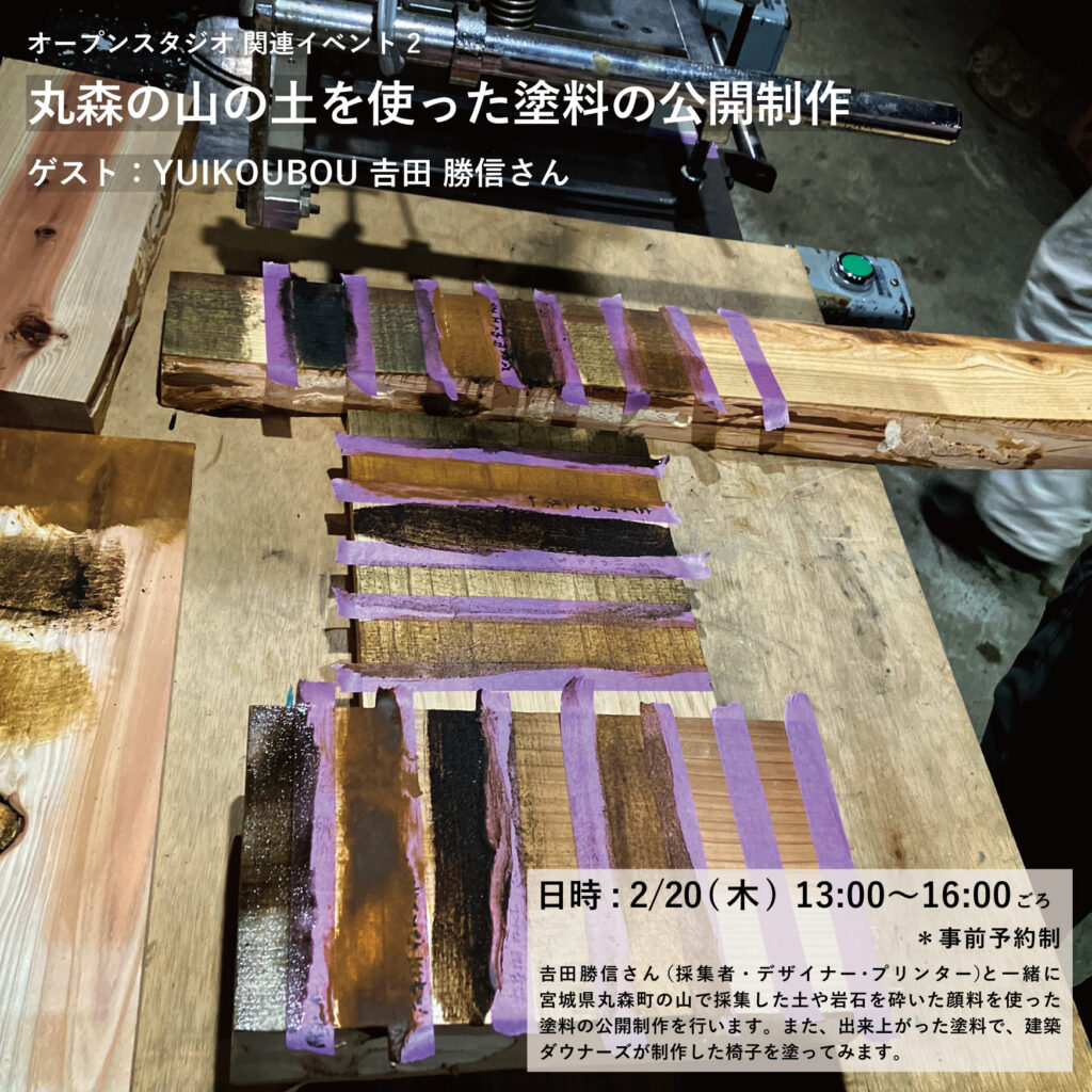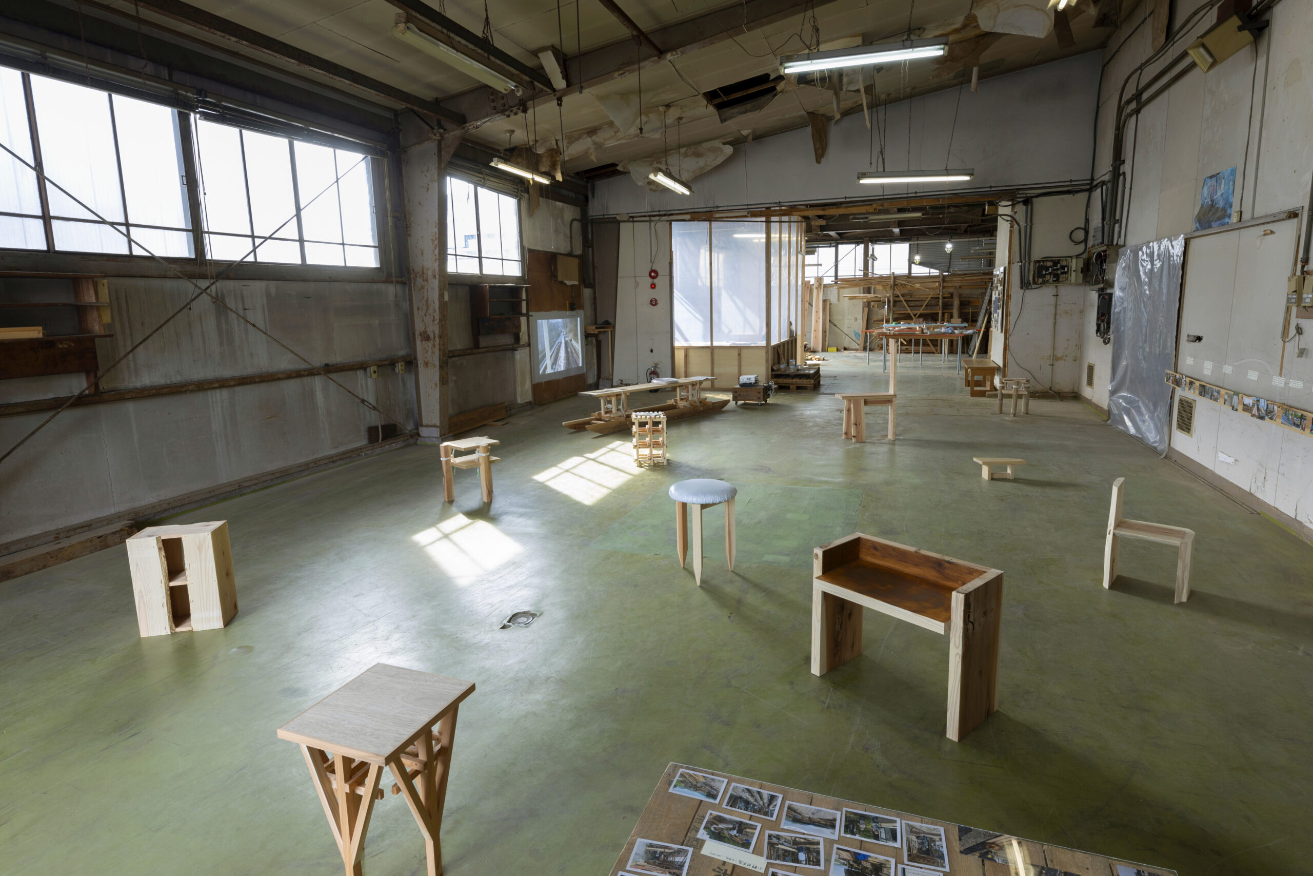 また、会期中は木材の生産に携わる方たちをお招きしたスツール作りのワークショップや、塗料の公開制作も行いました。