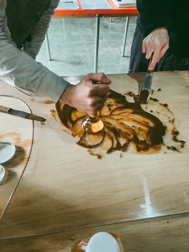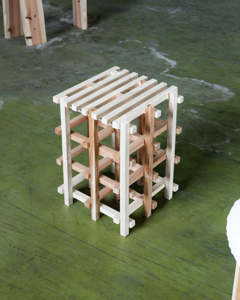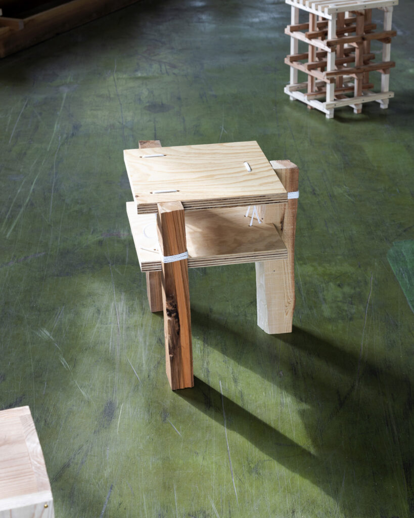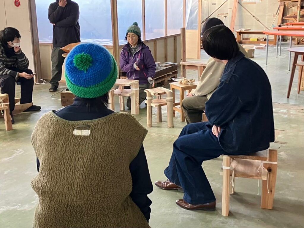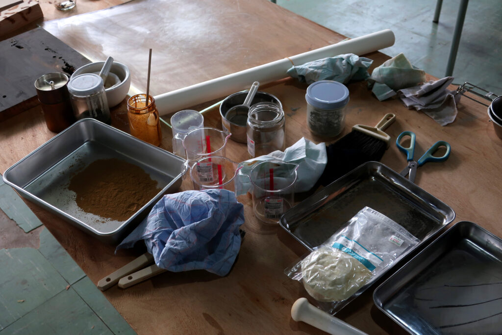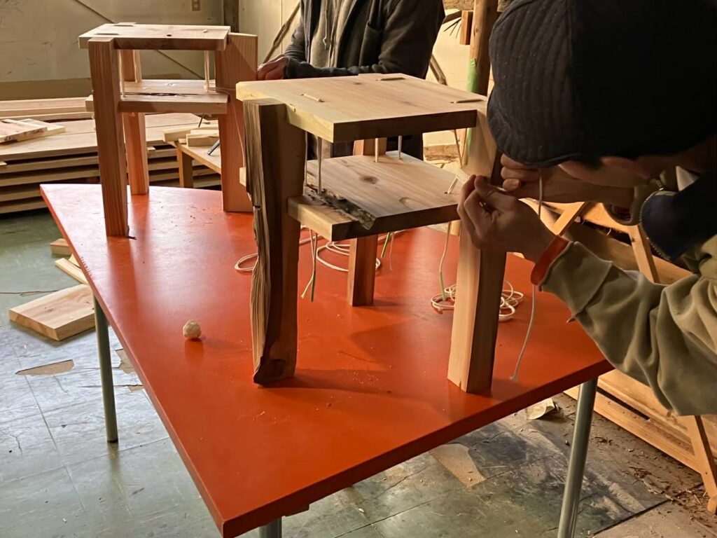 また、会期中は木材の生産に携わる方たちをお招きしたスツール作りのワークショップや、塗料の公開制作も行いました。