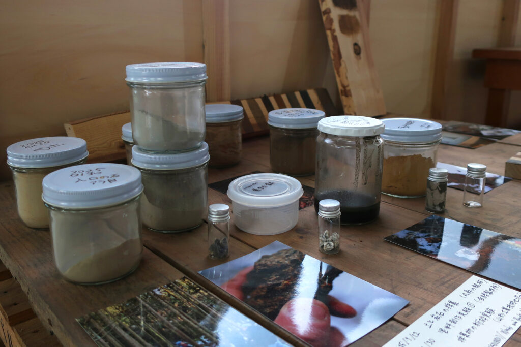 2025年は、これまで⾏ってきたリサーチをもとに、お話をお聞きた⽅達の⾔葉や印象的なエピソードを形や材料、作り⽅に反映した10種類の「椅⼦」を制作しました。オープンスタジオでは、それらの椅⼦を、インタビューした様々な方の声とともに公開しました。会場にはYUIKOUBOUの𠮷田 勝信さんと試作した丸森の山で採集した土や岩石を砕いた顔料や、それらから作った塗料のサンプルも展示しました。
